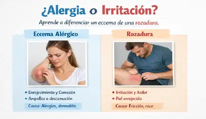 Mientras el eccema es una afección inflamatoria con una base inmunológica o alérgica que necesita un abordaje continuo y personalizado, la rozadura es una lesión mecánica más directa y generalmente más fácil de tratar si se actúa a tiempo.